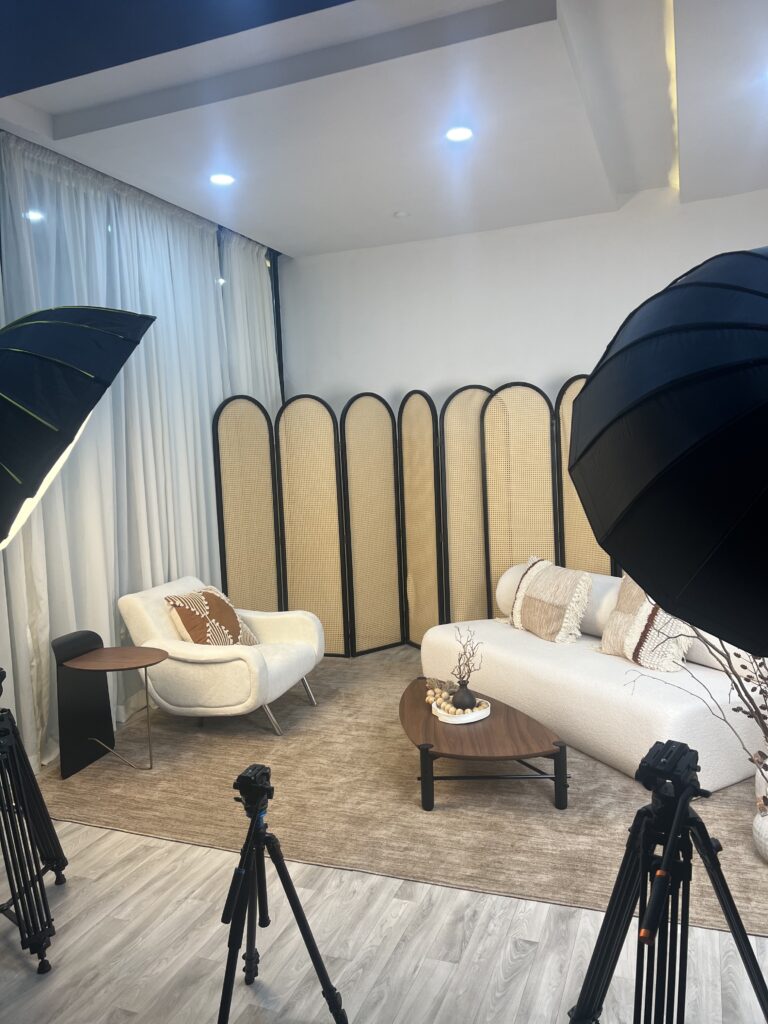 Take a look at our premium studio space designed with aesthetics and functionality in mind, perfect for all your content creation needs.